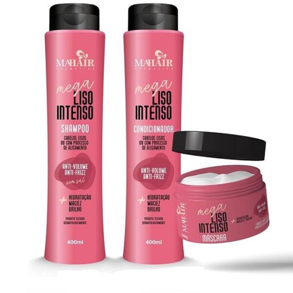 A Linha Mega Liso Intenso limpa e ajuda a deixar seus cabelos lisos por mais tempo. Possui propriedades reparadoras e protege seus cabelos durante os processos térmicos (secador, chapinha, etc.) deixando-os lisos e com brilho especial.