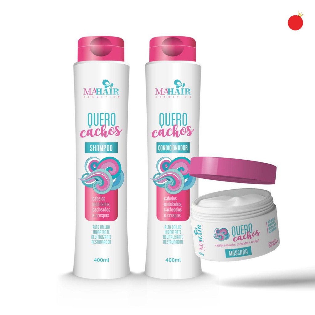 Kit Capilar Quero Cachos- Mahair – Shampoo + Condicionador + Máscara