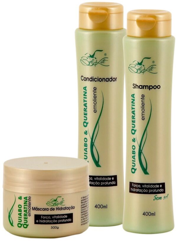 O Condicionador Quiabo e Queratina Belkit hidrata os cabelos deixando-os macios e sedosos. O Quiabo e a queratina fortalecem a fibra capilar, proporcionando aos cabelos um aspecto mais bonito e saudável.