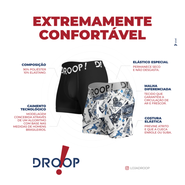 Com 4cm de largura e personalizada com a marca Droop!, nossa cinta elástica não vai marcar sua pele e fixa a cueca com total segurança.