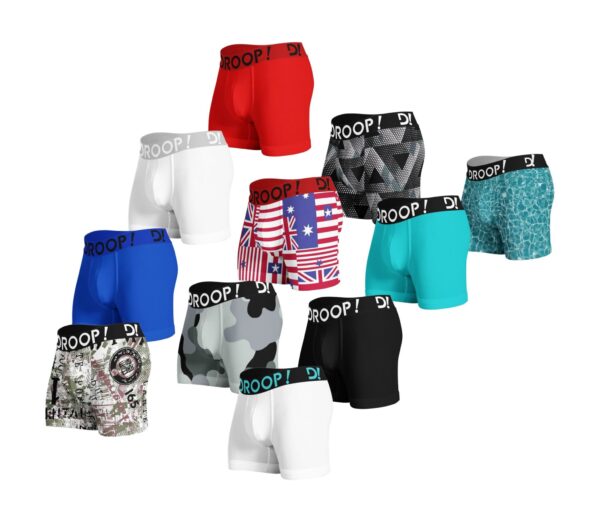 1-Nesta opção você receberá 12 unidades da cueca Boxer Digital Droop!, sendo as cores e estampas sortidas.